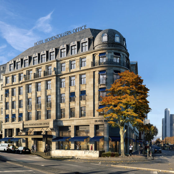 The revitalisation of Hotel Hohenzollern and its conversion into a modern office building will harness the full potential of its location and its history – all the while giving the city of Frankfurt a unique selling point. The historic façade with its diverse stylistic features and building elements is to be restored to its original style. In addition to the renovation and the technical upgrade of the office and commercial areas, the ground floor will be restructured to provide open and generous access points.