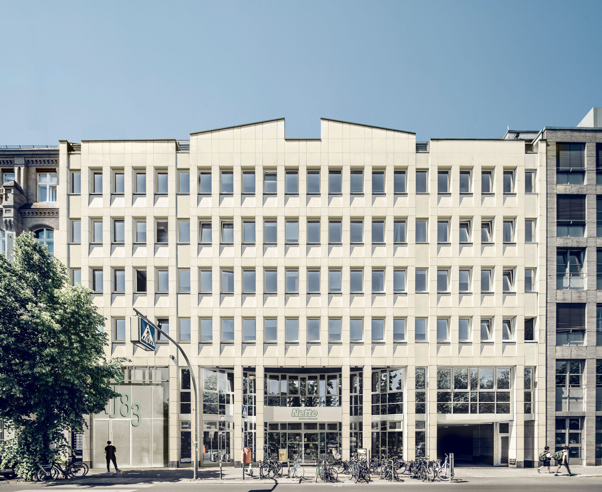 1996 entwarfen die Architekten Neufert Mittmann Graf und Partner das siebengeschossige Büro- und Geschäftshaus. Es liegt in fußläufiger Entfernung zum Spreekanal und sorgt mit seiner Südost-Ausrichtung und dem Blick auf den Luisenstädtischen Kirchpark für lichtdurchflutete Flächen. Hauptmieter der Multi-Tenant-Immobilie im kreativen Kreuzberg sind ein Verlag für Comics und Kinderzeitschriften sowie eine Agentur für digitales Marketing.